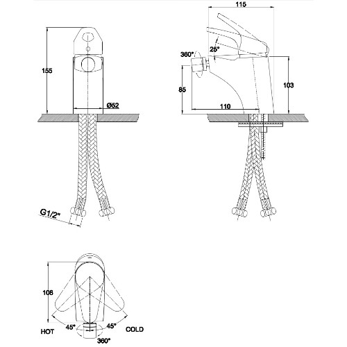 Смеситель для биде однорычажный COUNTY (хром), Ø 40, 110 мм, шпилька, KAISER
