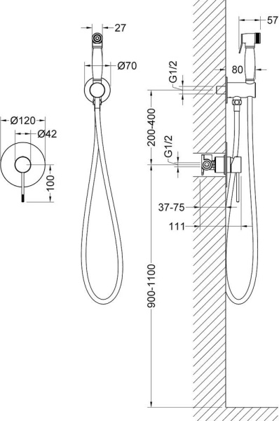 Смеситель для биде однорычажный Saona (чёрный), Ø 35, TIMO