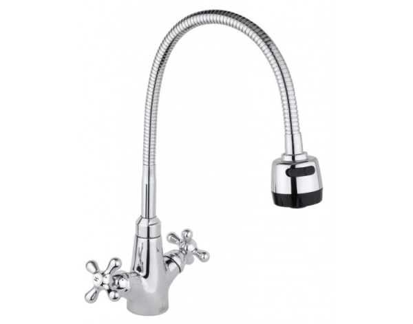 Смеситель для кухни с гибким изливом двухвент., крест-керамика Aviator (хром), TIMO