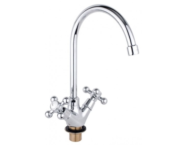 Смеситель для кухни двухвент., крест-керамика Aviator (хром), излив круглый 204 мм, гайка, TIMO