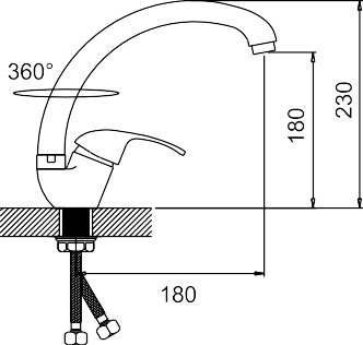 Смеситель для кухни Gota Rocio комплектуется гибкой подводкой 1/2" дюйма (350 мм), монтажный комплект - гайка