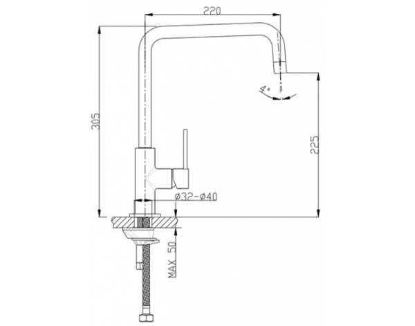 Смеситель для кухни боковой однорычажный Saona (хром), Ø 25, 220 мм, гайка, TIMO