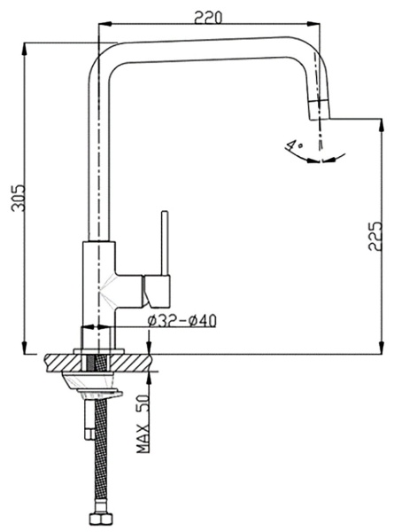 Смеситель для кухни боковой однорычажный Saona (сэнди), Ø 25, 220 мм, гайка, TIMO
