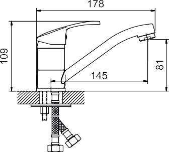Смеситель для кухни однорычажный Ebro (хром), излив плоский 145 мм, шпилька, GOTA ROCIO