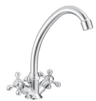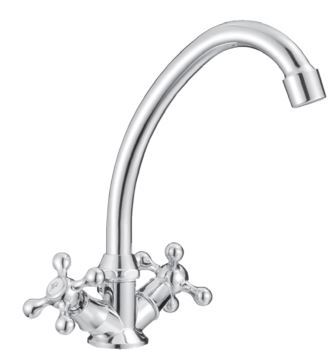 Смеситель для кухни двухвент., крест-керамика (хром), излив круглый 140 мм, гайка, VIKO