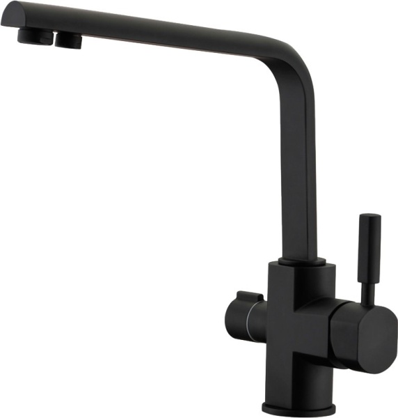 Смеситель для кухни фильтр боковой однорычажный DECOR (чёрный матовый), Ø 35, 205 мм, шпилька, KAISE