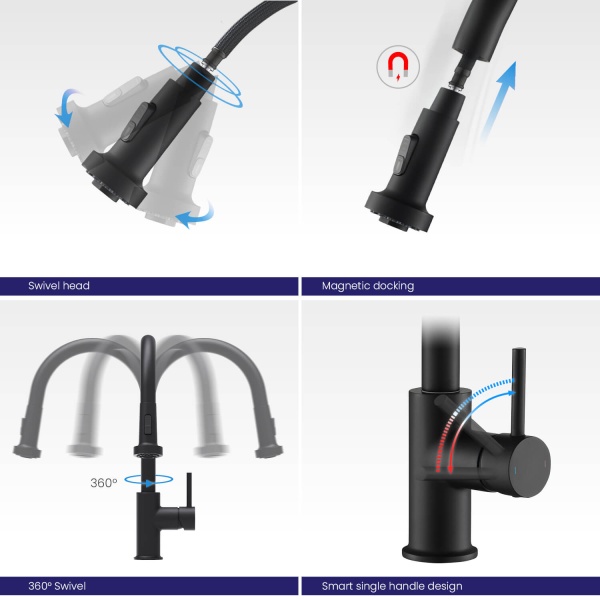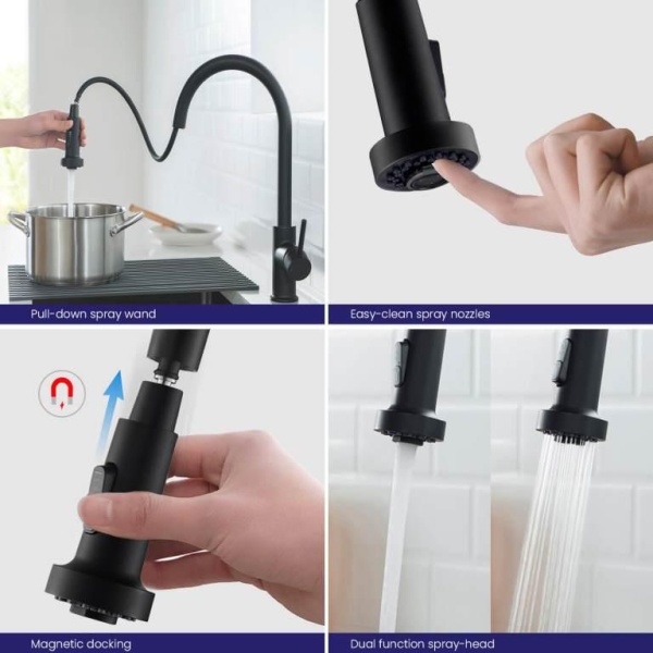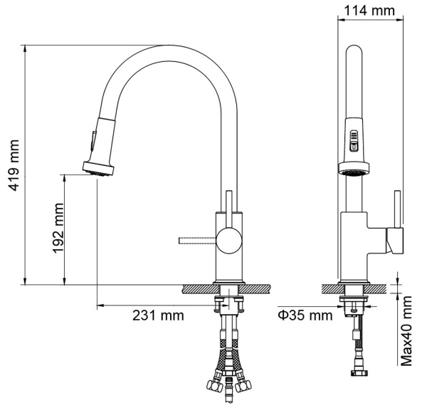 Смеситель для кухни с вытяжн. лейкой боковой однорычажный Saona (чёрный), Ø 35, излив круглый 231 мм