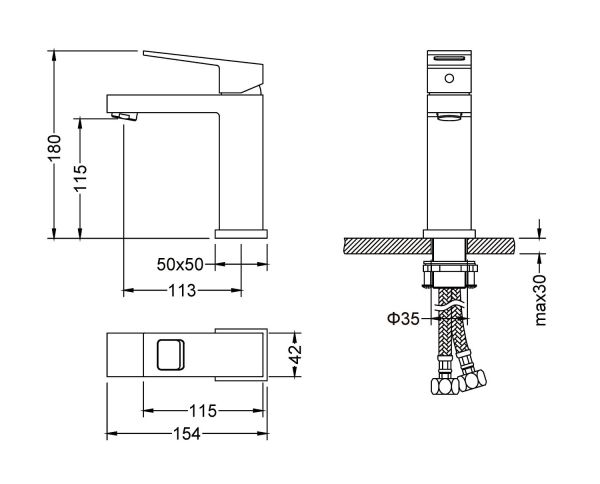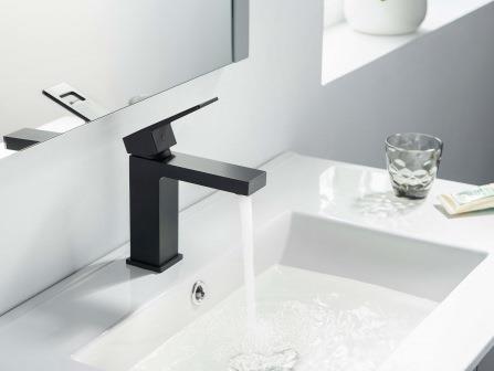 Смеситель для раковины однорычажный Briana (чёрный матовый), Ø 35, излив плоский 113 мм, гайка, TIMO