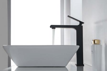 Смеситель для раковины-чаши однорычажный Anni (чёрный матовый), Ø 35, излив плоский 170 мм, гайка, T