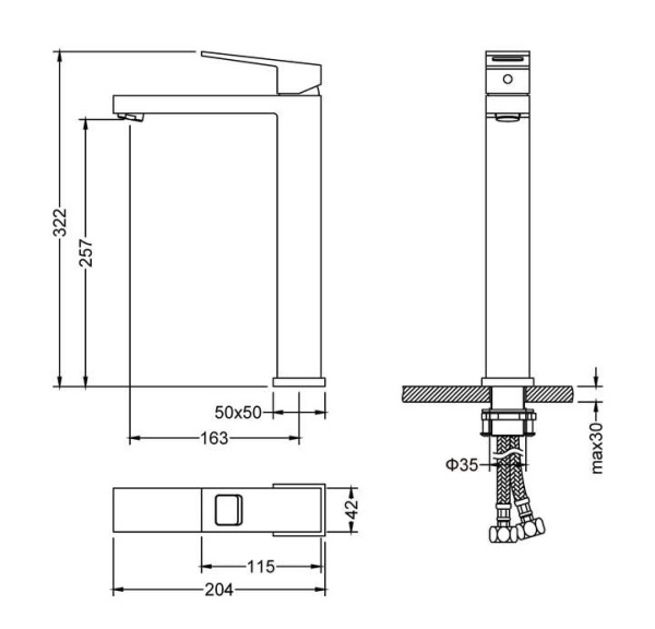 Смеситель для раковины-чаши однорычажный Briana (чёрный), Ø 35, излив плоский 163 мм, гайка, TIMO