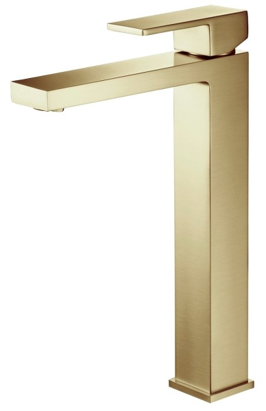 Смеситель для раковины-чаши однорычажный Selene (золотой матовый), Ø 35, излив плоский 163 мм, гайка