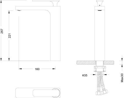 Смеситель для раковины-чаши однорычажный Torne (хром), Ø 35, излив плоский 160 мм, гайка, TIMO