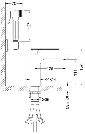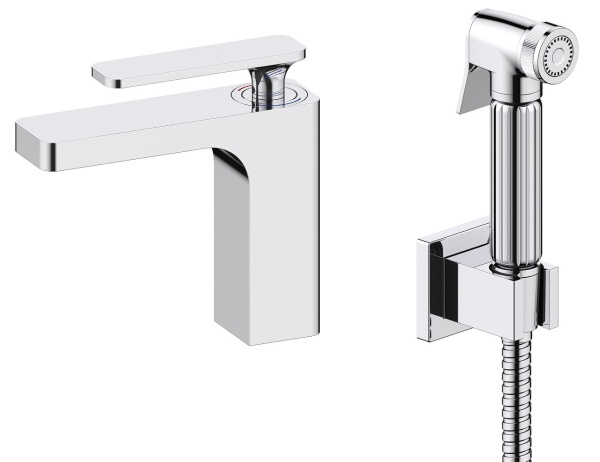 Смеситель для раковины с гигиен. душем однорычажный Torne (хром), Ø 35, излив плоский 125 мм, гайка,
