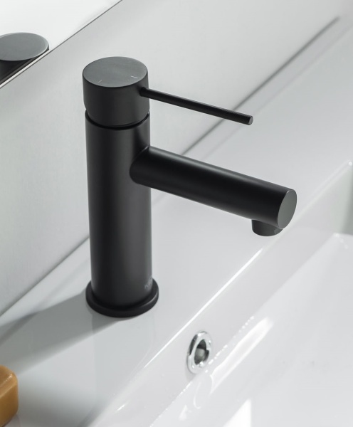 Смеситель для раковины однорычажный Saona (чёрный), Ø 35, излив круглый 112 мм, гайка, TIMO