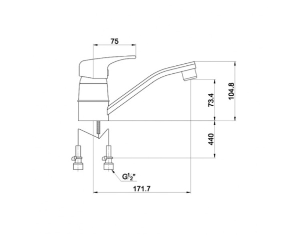 Смеситель для раковины однорычажный Standart (хром), Ø 40, излив плоский 171,7 мм, TIMO