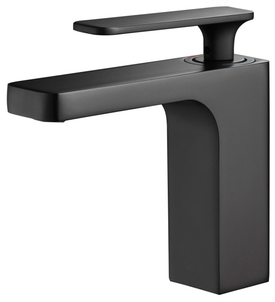 Смеситель для раковины однорычажный Torne (чёрный), Ø 35, излив плоский 125 мм, гайка, TIMO