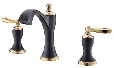 Смеситель для раковины врезной двухрычажный Unari (чёрный антик-золото), излив плоский 140 мм, TIMO