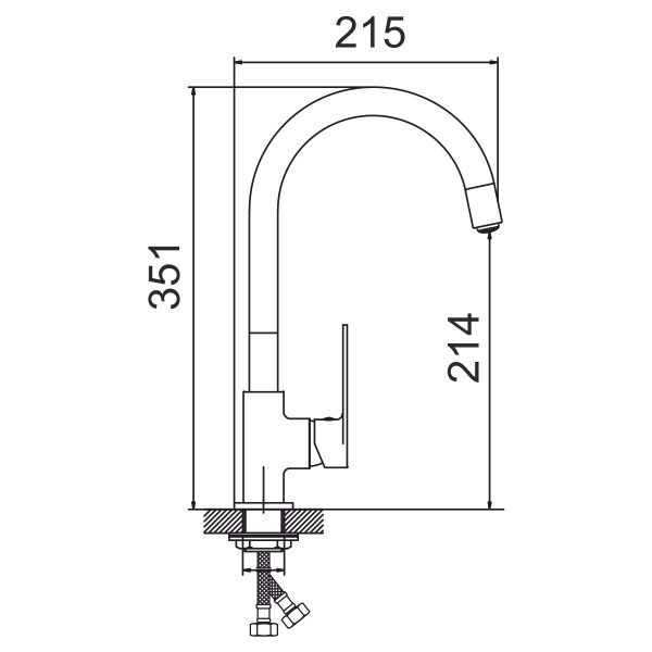 Смеситель для кухни Gota Rocio комплектуется гибкой подводкой 1/2" дюйма (350 мм), монтажный комплект - гайка