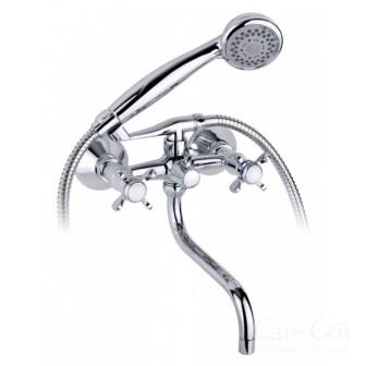 Смеситель для ванны двухвент., крест-керамика Flagman (хром), излив круглый TIMO