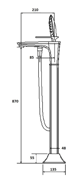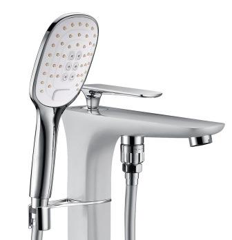 Смеситель для ванны, напольный однорычажный Helmi (хром, белый), Ø 35, излив плоский 210 мм, TIMO