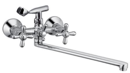 Смеситель для ванны двухвент., крест-керамика (хром), излив плоский 330 мм, VIKO