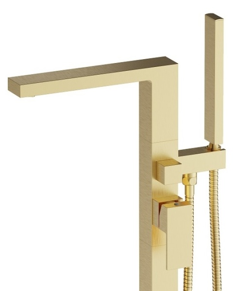 Смеситель для ванны, напольный боковой однорычажный Selene (золотой матовый), Ø 35, излив плоский 21