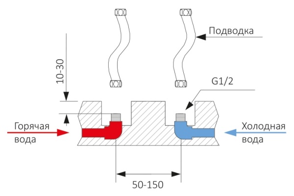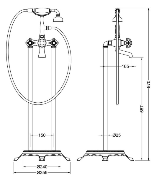Тип: Смеситель напольный с двумя рукоятками для ванной и душа
