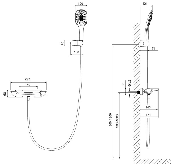 Смеситель для ванны с душем, каскадный к/н однорычажный Helmi (чёрный матовый), Ø 35, излив плоский