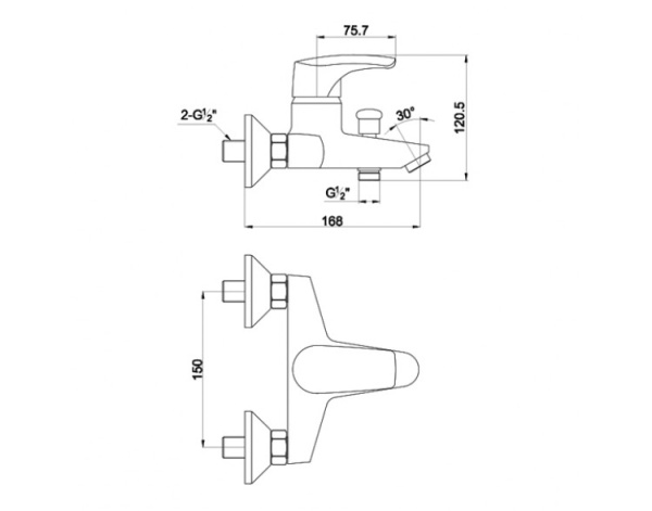 Смеситель для ванны к/н однорычажный Uta (хром), Ø 40, излив плоский TIMO