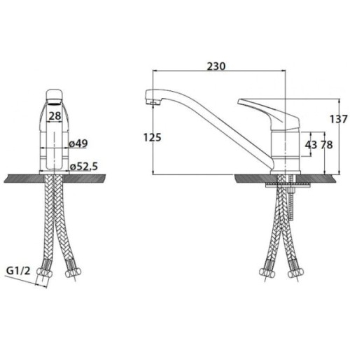 Смеситель для кухни однорычажный COUNTY (песочный мрамор), Ø 40, излив плоский 125 мм, шпилька, KAIS