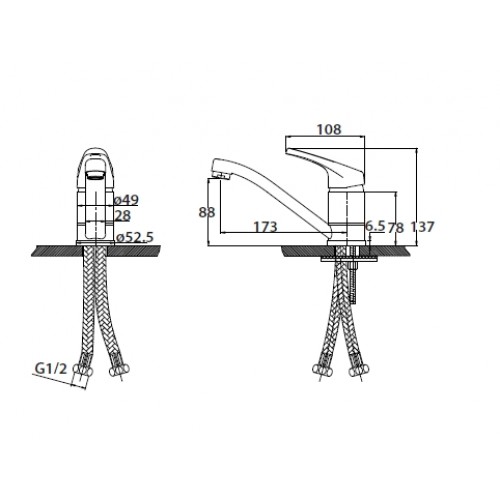 Смеситель для раковины однорычажный COUNTY (хром), Ø 40, излив плоский 173 мм, шпилька, KAISER