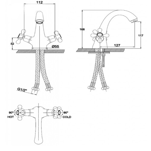 высота излива - 168 мм