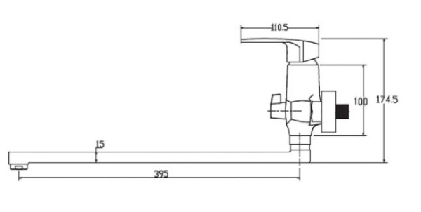 Смеситель для ванны в/пер. однорычажный GUSS (хром), Ø 35, излив плоский 395 мм, KAISER