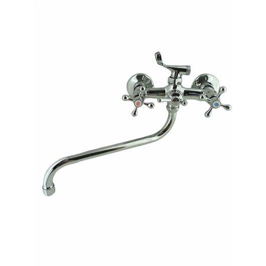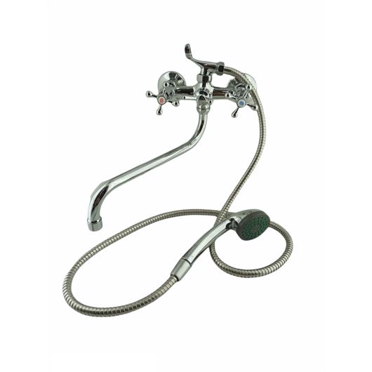 Смеситель для ванны двухвент., крест-керамика (хром), излив круглый 300 мм, DOKORONA DK-2805A(110)(125)