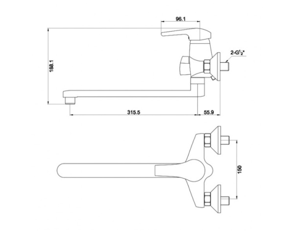 Смеситель для ванны однорычажный Classic (хром), Ø 40, излив плоский 315,5 мм, TIMO