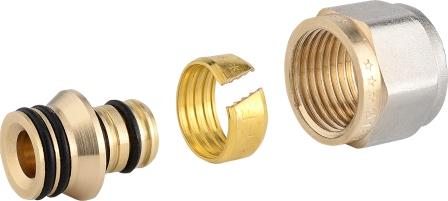 Обжимные фитинги состоят из корпуса, накидной гайки, обжимного разрезного кольца и диэлектрической прокладки, препятствующей возникновению гальванической пары Cu-Al. Надежность систем, смонтированных с применением обжимных фитингов PROFACTOR®, подтверждена многолетним опытом их эксплуатации на объектах индивидуальной и многоквартирной застройки.