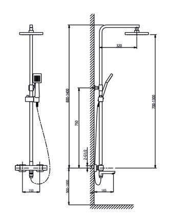 Душевая система с термостатом с квадратной лейкой в стиле модерн
