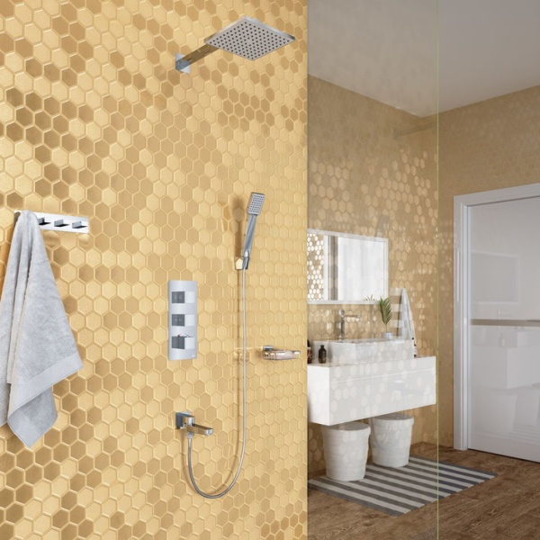 Душевая система скрытого монтажа, с термостатом с квадратной лейкой в стиле модерн