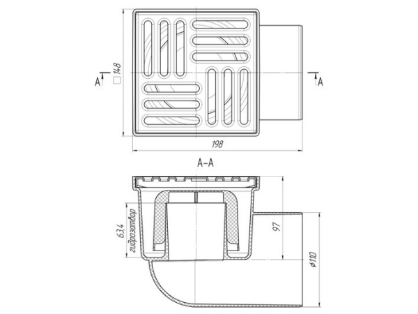 • Тип решетки слива: сталь, 150 на 150 мм
