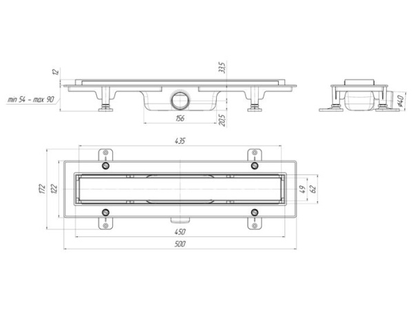 Трап пластиковый линейный "Мол" сухой 450х62, с выпуском 40 мм, под кладку плитки