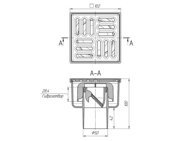 • Тип решетки слива: нержавеющая сталь, 100 на 100 мм
