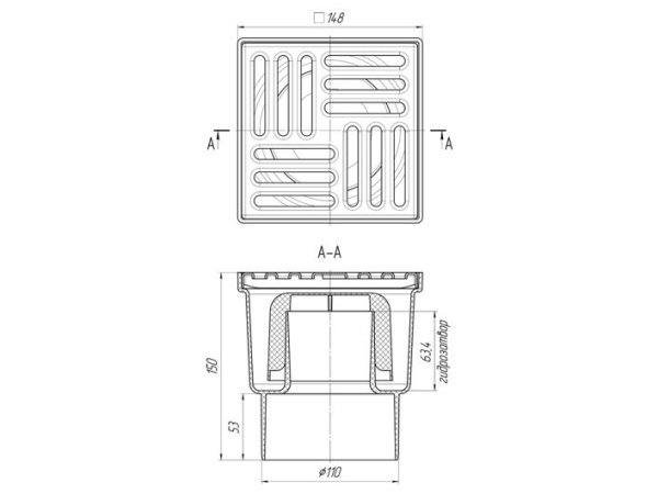 • Тип решетки слива: нержавеющая сталь, 150х150 мм