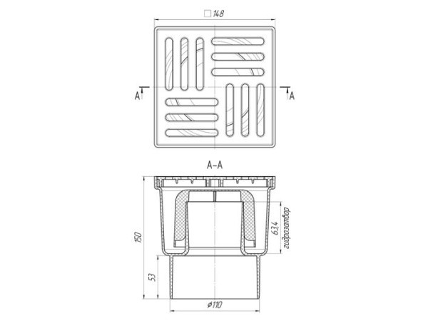 • Тип решетки слива: пластик, 150х150 мм