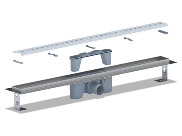 Трап линейный металлический с гидрозатвором, с решеткой "Киль" 850 мм. Решетка матовая.