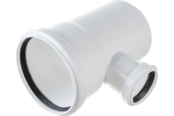 Тройники переходные соединительные белые – фитинги из композиций полипропилена и сополимеров пропилена – применяются для подключения к внутреннему канализационному трубопроводу диаметром 110 мм дополнительного ответвления под различными углами (45° и 87°). Диаметр подключаемого ответвления меньше, чем проходной диаметр тройника.