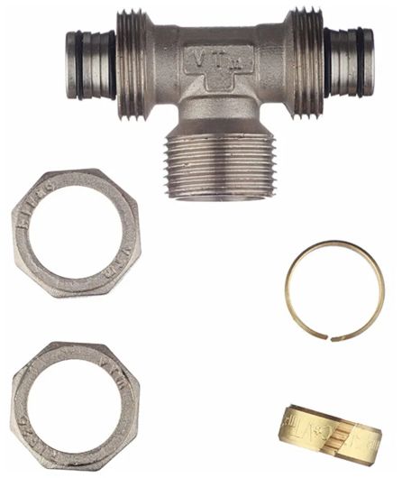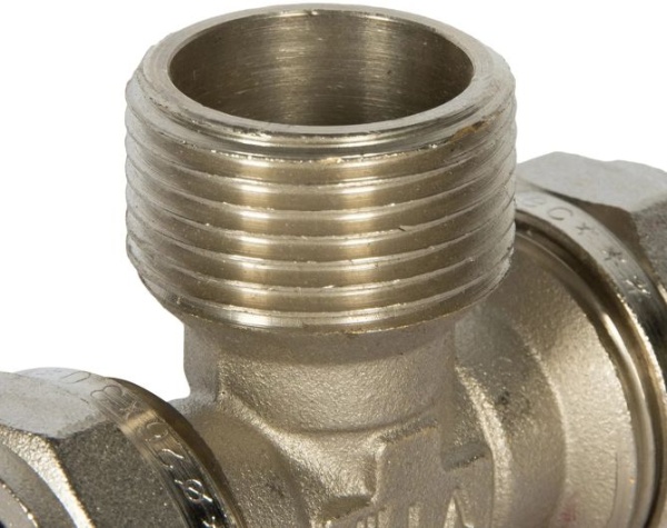 Этот трехсторонний латунный никелированный фитинг предназначен для соединения с металлопластиковым трубопроводом компонентов, которые подключаются через резьбу. Фитинг имеет наружную трубную резьбу, соответствующую ГОСТ 6357.