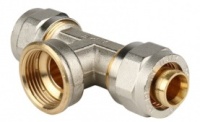 Трехсторонний латунный фитинг для подсоединения к металлопластиковому трубопроводу компонента с резьбовым подключением. Резьба фитинга – внутренняя трубная