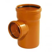 Тройники для наружной канализации из ПВХ используются для монтажа безнапорных систем канализации в случае необходимости организации разводки и ответвлений трубопроводной системы. Такой тип наружных канализационных тройников используется для соединения труб равного диаметра под углом 87 градусов друг к другу.
