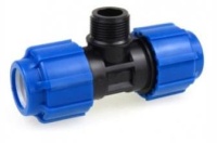 Тройник ПНД обжимной с наружней резьбой – фитинг для труб из полиэтилена низкого давления (ПНД), предназначенный для создания отводов в водопроводных сетях, в том числе – в сетях для подачи питьевой воды.
