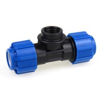 Тройник ПНД обжимной с внутренней резьбой – трубопроводный фитинг для труб ПНД, который позволяет с помощью боковой внутренней резьбы присоединить к основному трубопроводу отвод. Тройники отличаются диаметром присоединяемых труб, при этом все три разъёма имеют равный диаметр.